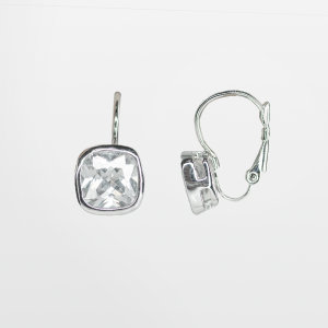 Arete de cristal y rodio con diseño de cuadro.