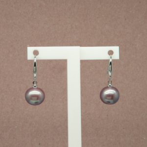 Aretes de plata .925 de perla cultivada 11mm color café. broche gancho.