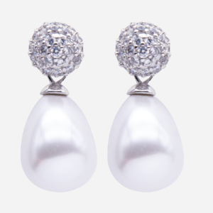 Arete de plata con madreperla en gota y esfera con circones