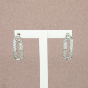 Arete de rodio diseño segurito con circones, broche poste.