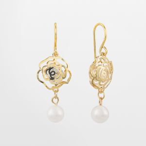 Arete de aleación con baño de oro diseño de flor con cristales y perla cultivada