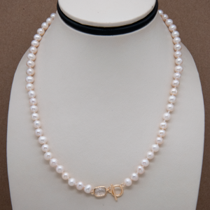 Collar corto de perlas cultivadas 5mm 6mm con dije de chapa de oro de 18k con cristal blanco