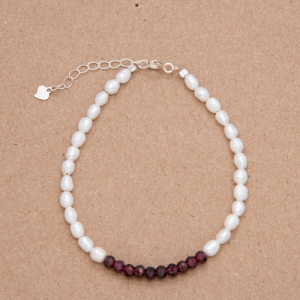 Pulsera de perlas de arroz y granate